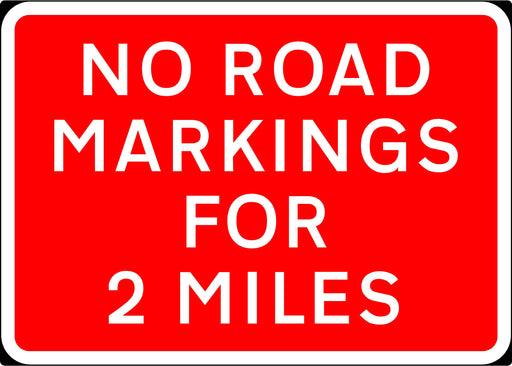 1050x750mm No Road Markings For 2 Miles - 7012 - Rigid Plastic