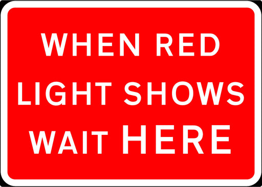 1050x750mm When Red Light Shows Wait Here - 7011 - Rigid Plastic