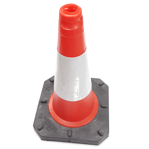 500mm two piece red and white coneSupplied with fully reflective red/white/red sleeveConforms to BS873Weight 2.6kgpriced per pack 10 cones